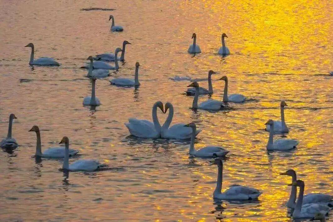 More than 3,000 swans have arrived in flocks on the Dayang River in Dandong, Liaoning Province. Gliding across the glistening water, these elegant swans paint a stunning ecological picture amid the scenic beauty.