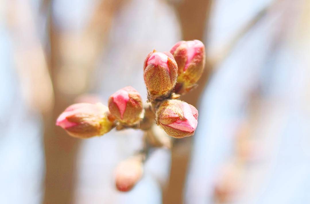 Spring breezes brush against the peach blossom branches in Shenyang, Liaoning Province. Tiny pink buds adorn the twigs, quietly preparing to bloom as they embrace the gentle warmth of spring.