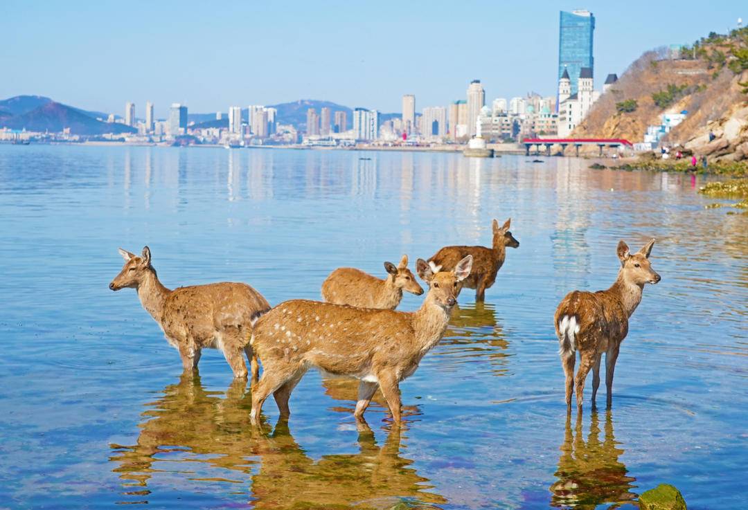 A herd of adorable spotted deer has been spotted at Golden Beach in Dalian, Liaoning, enjoying the seaside scenery. What a lovely spring surprise!