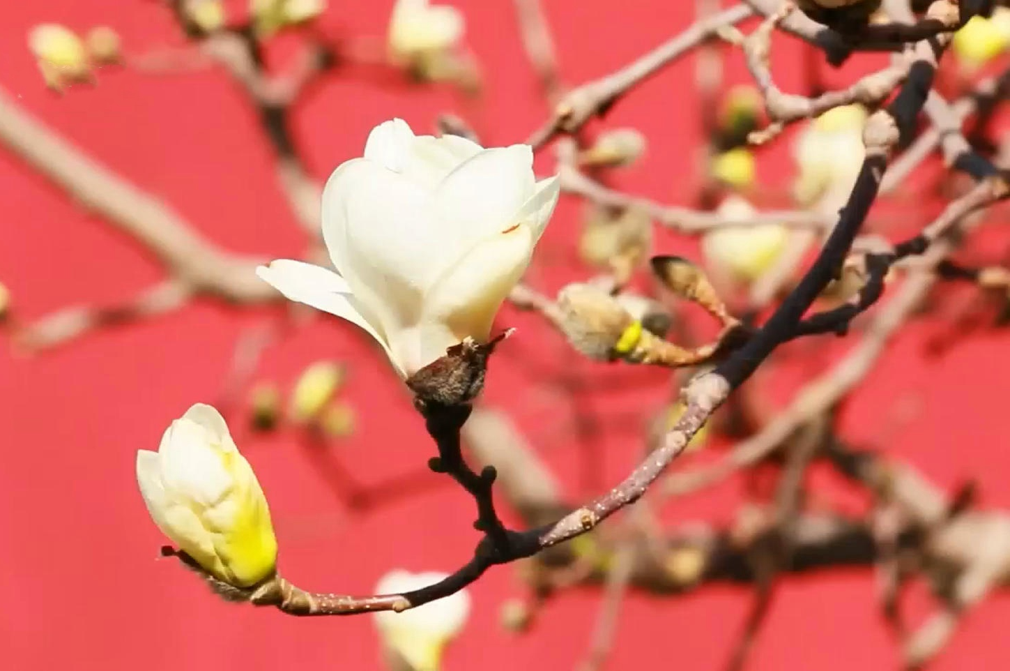 Spring is in full swing at the Shenyang Imperial Palace in Liaoning Province, where azaleas flourish along the palace walls. Vibrant pink-purple flowers set off the red walls, while the ancient architecture basks in the spring sunshine, creating a beautiful seasonal scene.
