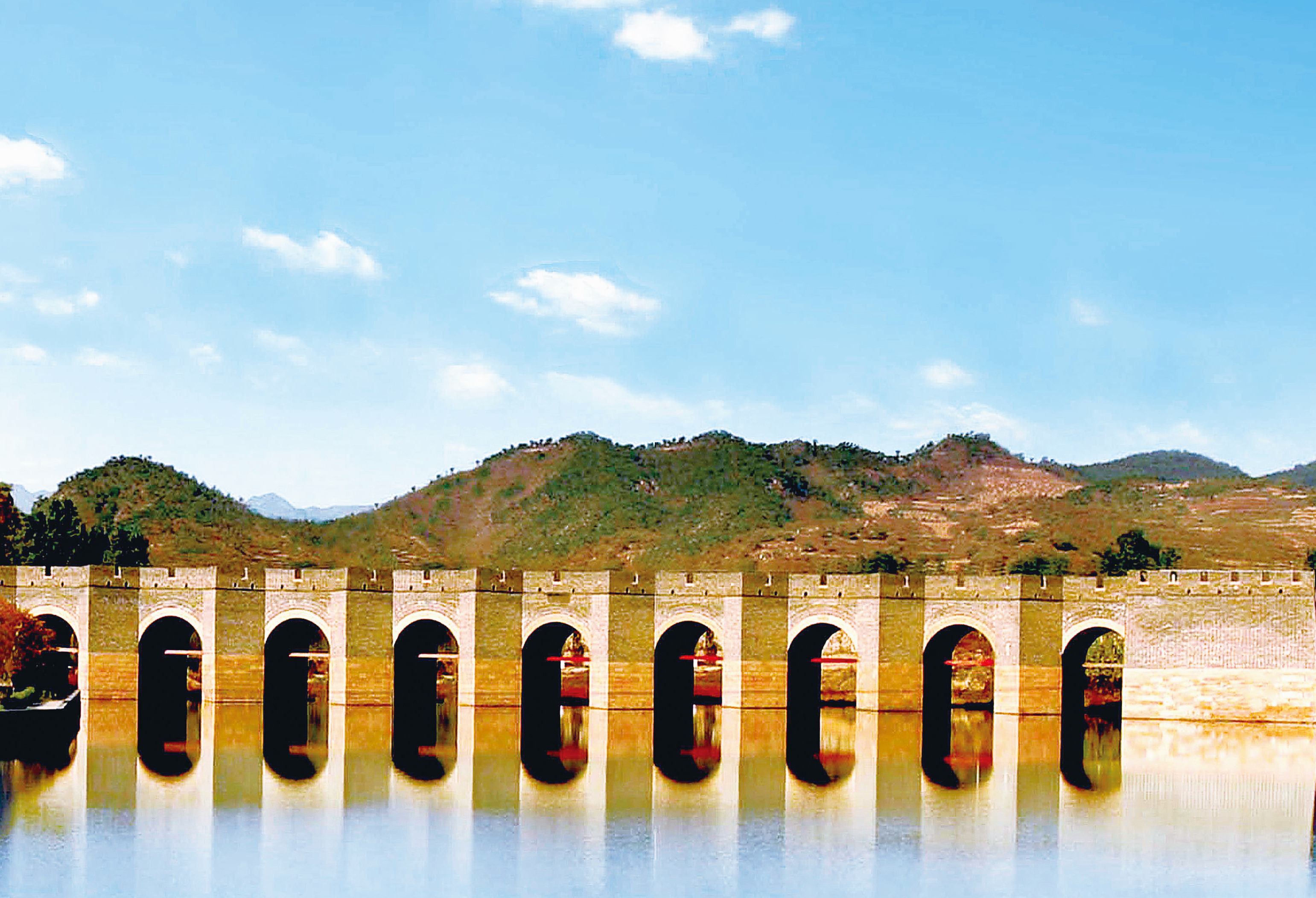 The Jiumenkou Great Wall in Huludao City, Liaoning Province is the only section of the Great Wall built over water. Tourism companies have now introduced boat tours on the water, allowing visitors to get an up-close view of the Wall’s reflection.