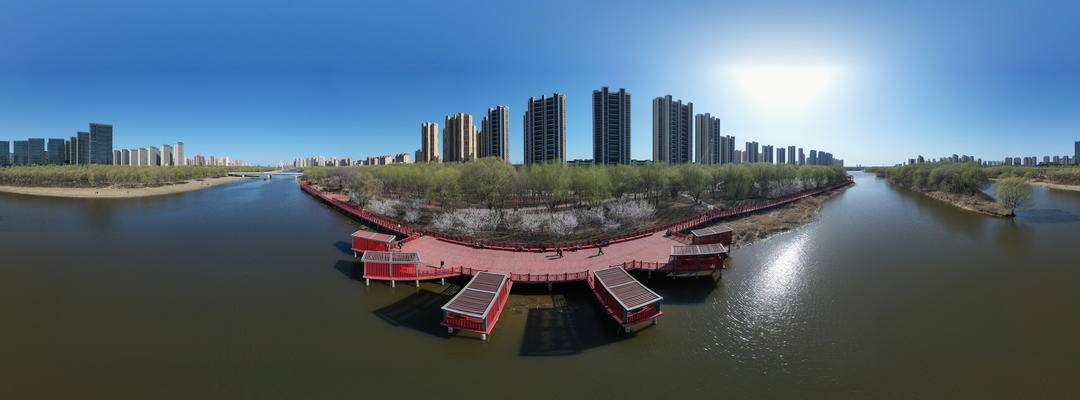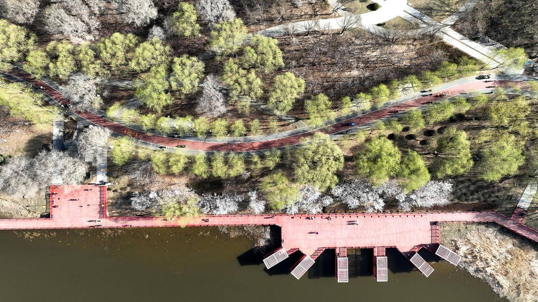 Bathed in warm spring sunshine, both banks of the Puhe River in Shenyang, Liaoning Province are adorned with pink peach blossoms and fresh green willows, creating a delightful contrast.