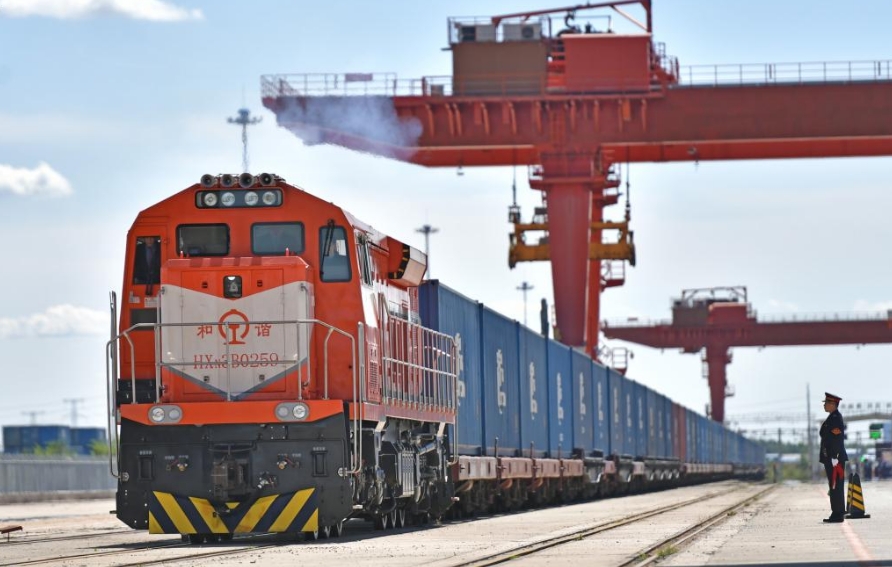 19일 중국-유럽 화물열차(선양) 집결센터에서 출발하고 있는 X8103편 열차.