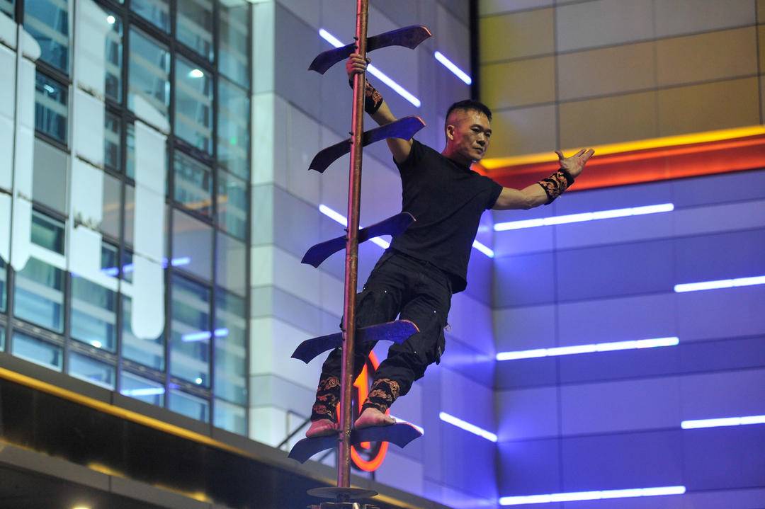 중치우(추석) 연휴 3일 간, 안산 완다광장에서 매일 이색적인 무형문화재 공연이 펼쳐졌다. 현지 소수민족공연단은 중국 국가급 무형문화재 훠후(火壶·불병)와 상다오산(上刀山·칼산 오르기) 등을 선보여 시민들의 감탄을 자아냈다.