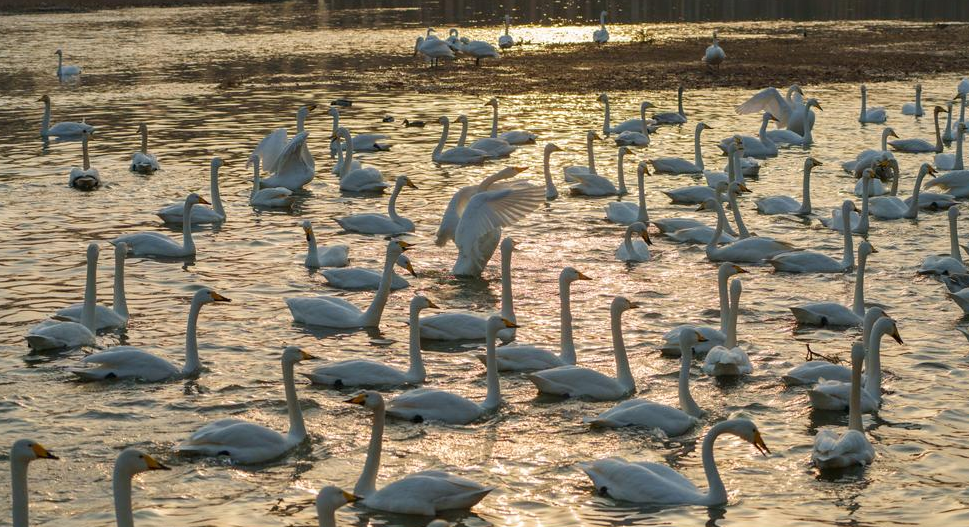 랴오닝성 차오양시 다링허 일대에서 서식하며 겨울을 나고 있는 백조를 보기 위해 많은 사람의 발길이 이어지고 있다.