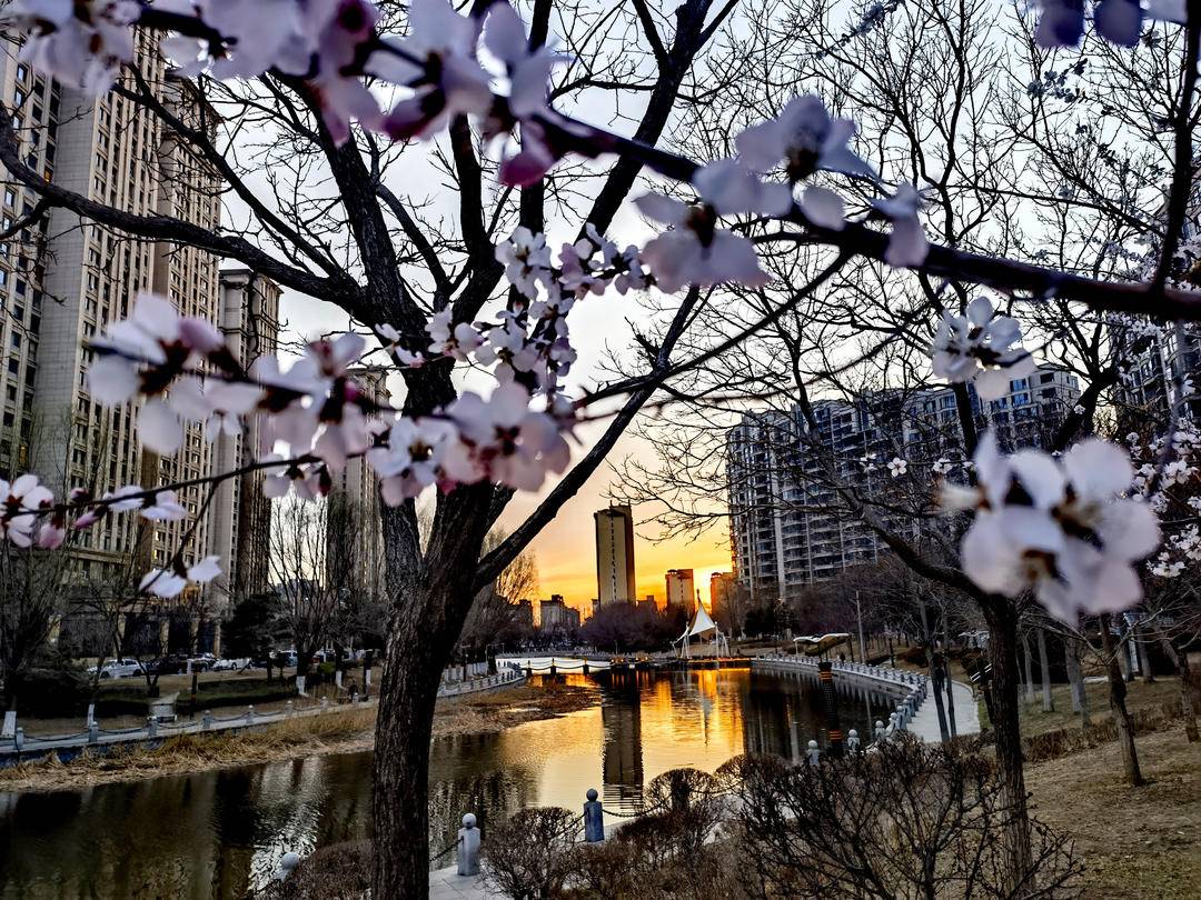 강가를 따라 걷다 보면 복사꽃이 바람에 살랑이고 노을빛까지 더해져 따뜻한 금빛으로 물들었다. 밤이 되면 대극장의 네온사인이 화려한 꽃과 어우러져 봄밤의 낭만을 한껏 자아냈다. 많은 시민이 가족, 친구와 함께 꽃구경을 나와 카메라에 아름다운 순간을 담으며 봄날의 생기와 여유를 만끽했다.