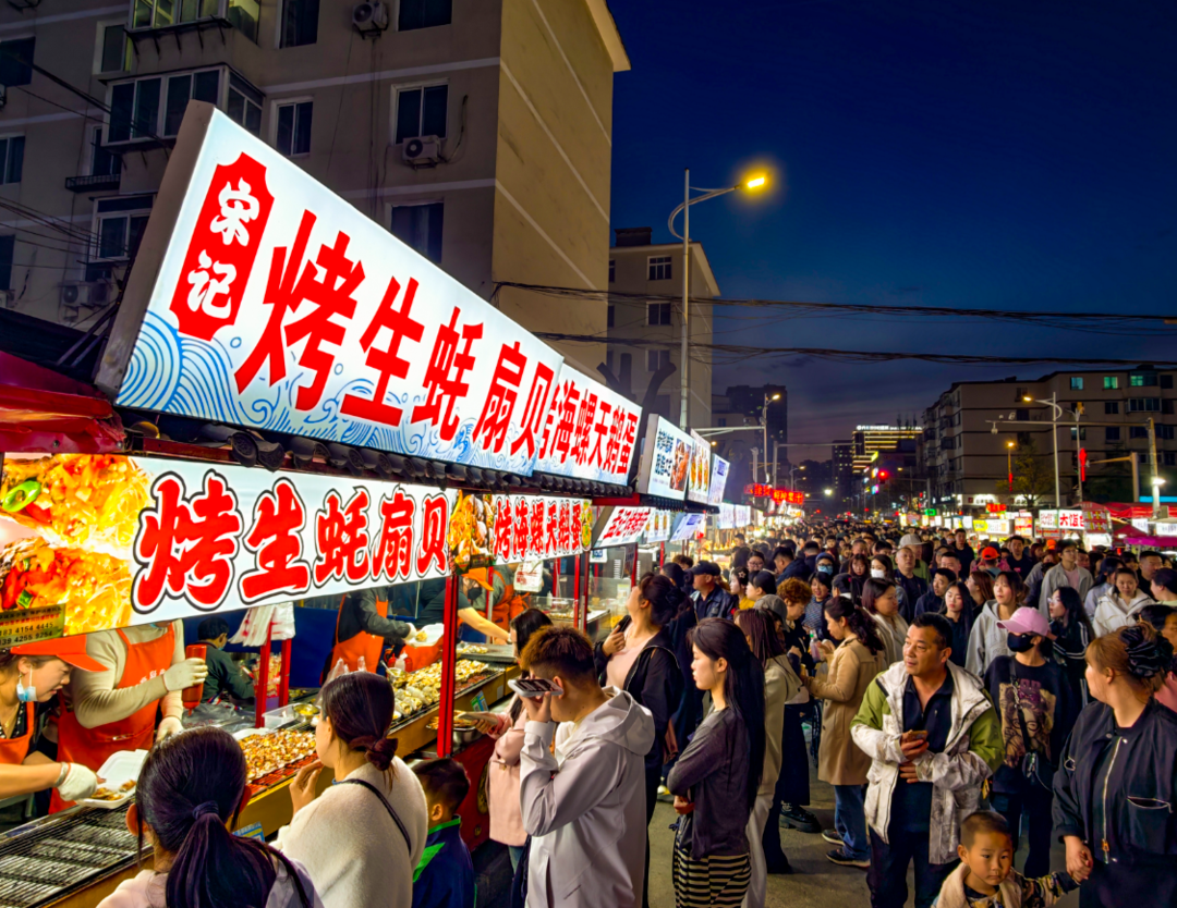 240개의 먹거리 부스와 100개에 가까운 문구·잡화 소매점이 모두 영업을 시작해 야시장 안은 시종 인파로 북새통을 이뤘다. 길 양쪽으로는 양꼬치 구이의 고소한 냄새, 길거리 음식의 감칠맛, 시원하고 달콤한 음료 향이 뒤섞여 침샘을 자극한다. 단둥식 숯불구이, 냉면 구이 같은 오랜 인기 메뉴 앞에는 대기줄이 늘어섰고, 치즈 돈가스나 스시 타코 같은 트렌디한 음식은 젊은 층에게 큰 인기를 끌었다. 액세서리 수공예품, 생필품 부스도 사람들로 붐벼 시민들의 먹고, 쉬고, 쇼핑하는 욕구를 빠짐없이 충족시켰다.