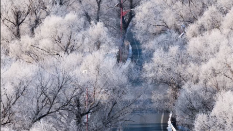 눈꽃으로 뒤덮인 랴오양 숲 속 도로