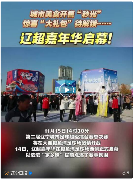 鞍山牛庄馅饼、千山南果梨奶茶、南果梨汁开售不到1小时便全部售空;锦州非遗绳编技艺特别为“辽超”设计了足球系列产品;沈阳鸡架炙手可热……各地风物与文化在此交融,共同绘出辽宁“嘉年华”的生动画面。