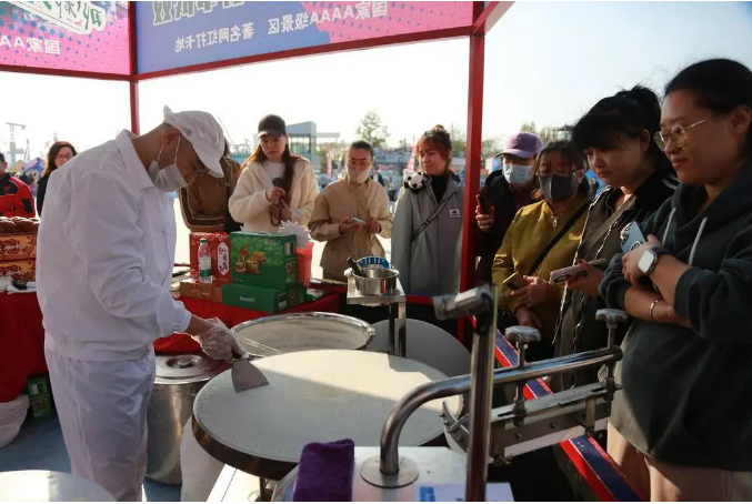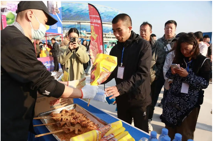 在嘉年华的中心区域,全省文旅资源展示区汇聚了辽宁十四市的特色风采,琳琅满目的展品铺满展架,如同一座微缩的“辽宁客厅”。现场人气火爆,多款美食开售不久即被抢购一空。