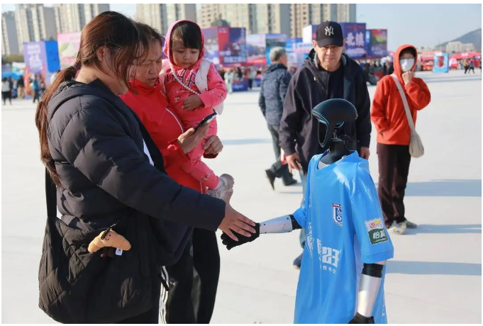 身着“辽超”大连队球衣的宇树机器人成为现场的“互动明星”。爱伯特教育科技(辽宁)有限公司副总经理韩东鹏告诉记者,在保障电量的前提下,这台机器人可以对话、握手、巡游互动。“辽超嘉年华”期间,每天安排机器人巡场4次,每场约20分钟,欢迎大家来互动体验。