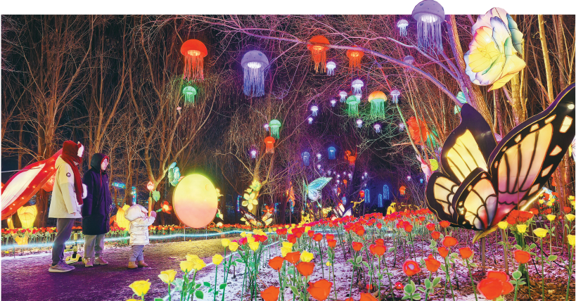 新年前夕,沈阳和平杯世界足球公园里,灯火璀璨,流光溢彩,处处洋溢着欢乐祥和的节日氛围。 本报记者 白琳 摄