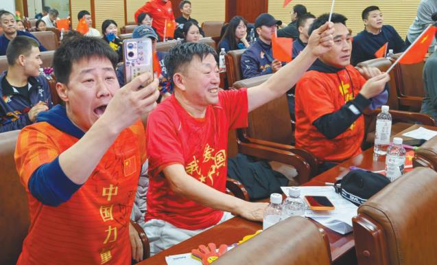 2月21日,省体育局组织运动员、教练员及干部职工集中收看米兰冬奥会中国队自由式滑雪空中技巧混合团体比赛。 本报记者 张博 摄
